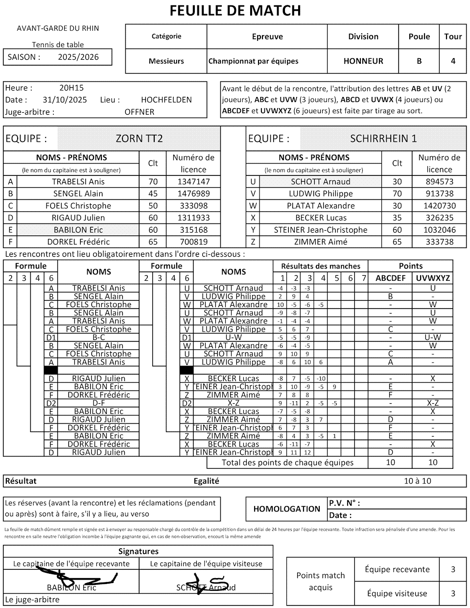 Ce bon résultat est collectif. Mais notons la perf de Christophe sur le jeune classé 30 en 3-0 et Anis qui l’emporte sur le classé 70 lors de la dernière rencontre.